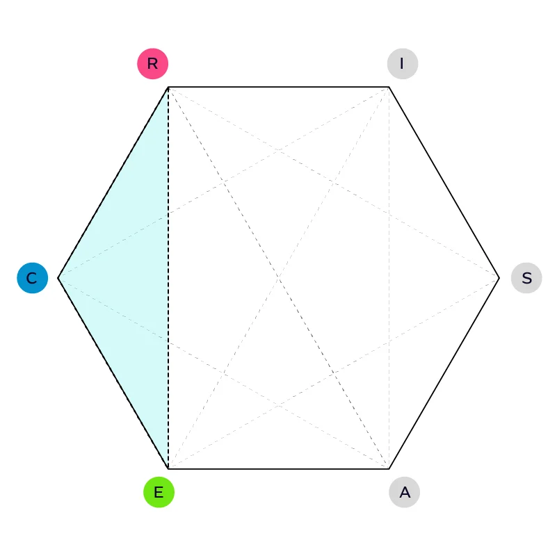 کد تست هالند شما یعنی قراردادی (C)، متهورانه (E) و واقع گرایی (R)، تعیین می کند که چگونه با دنیای اطراف خود ارتباط برقرار میکنید. در ادامه با توجه به این کد و امتیاز در 6 کد اصلی هالند، تحلیلی دقیقتر انجام خواهیم داد تا شما را در یافتن مسیر مناسب هدایت کنیم.